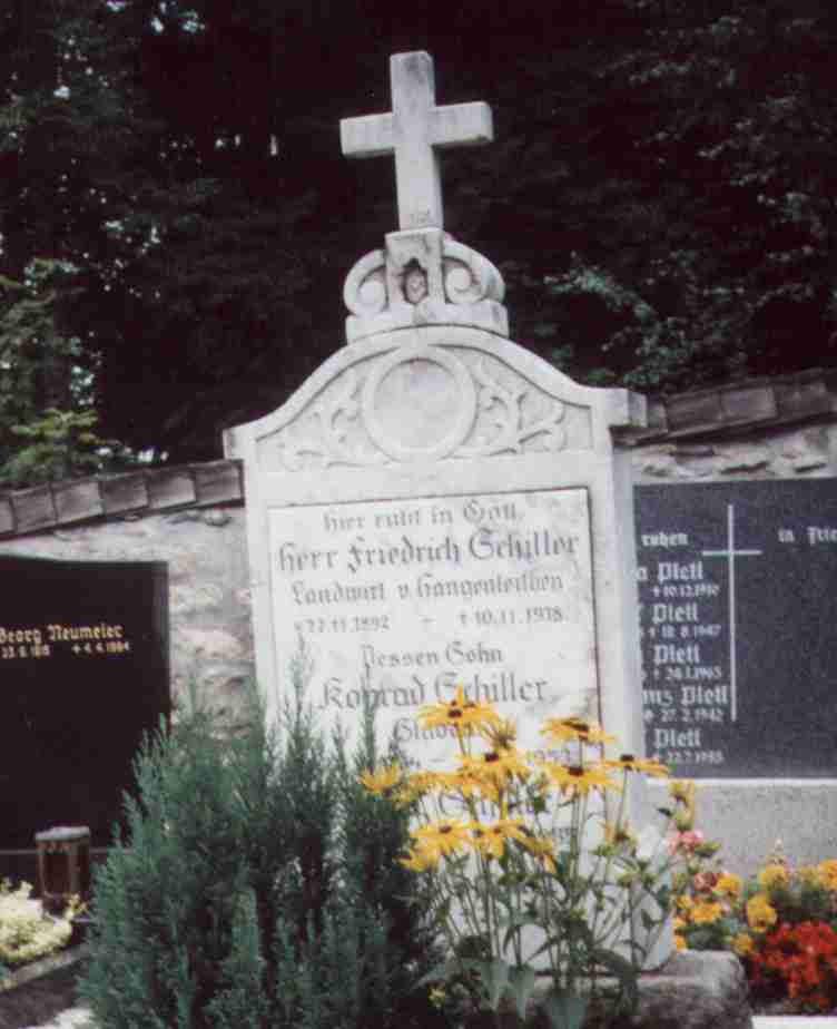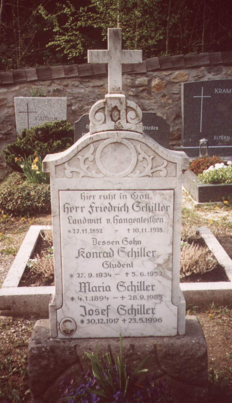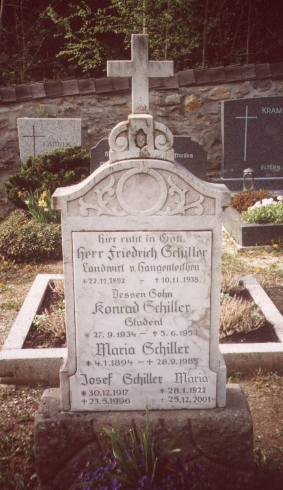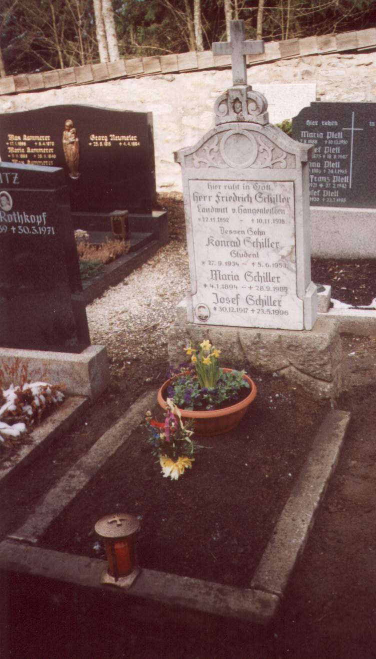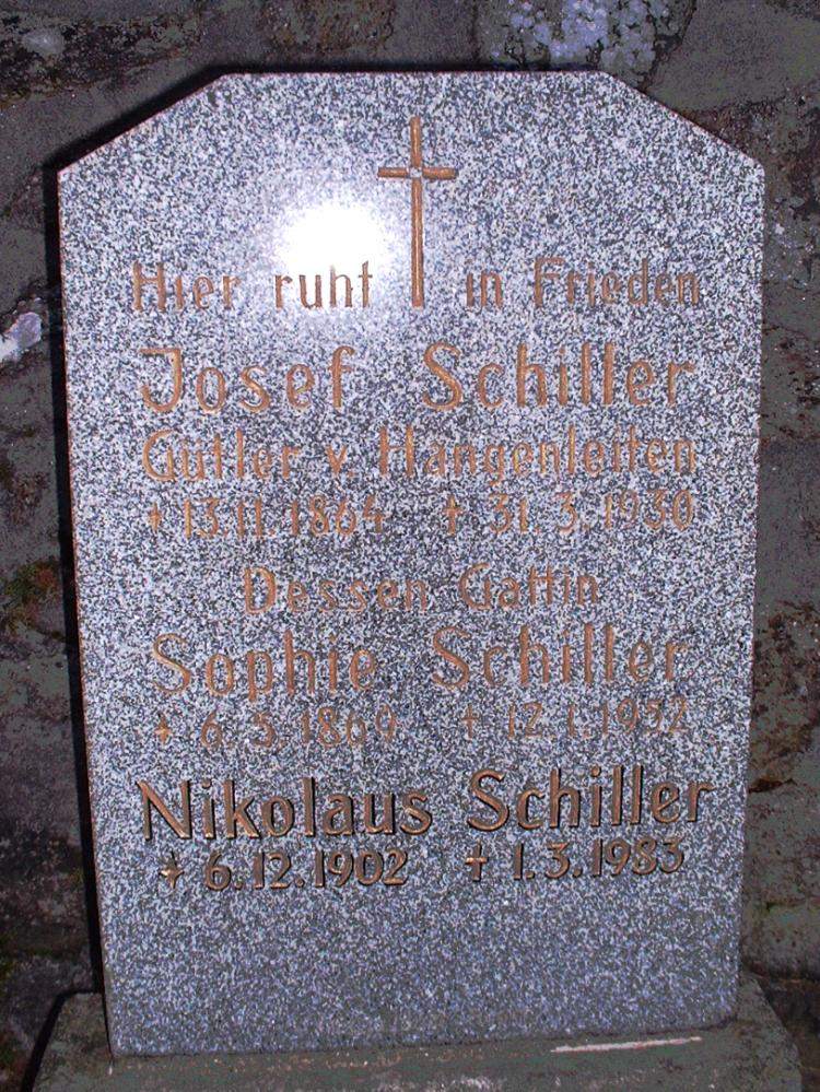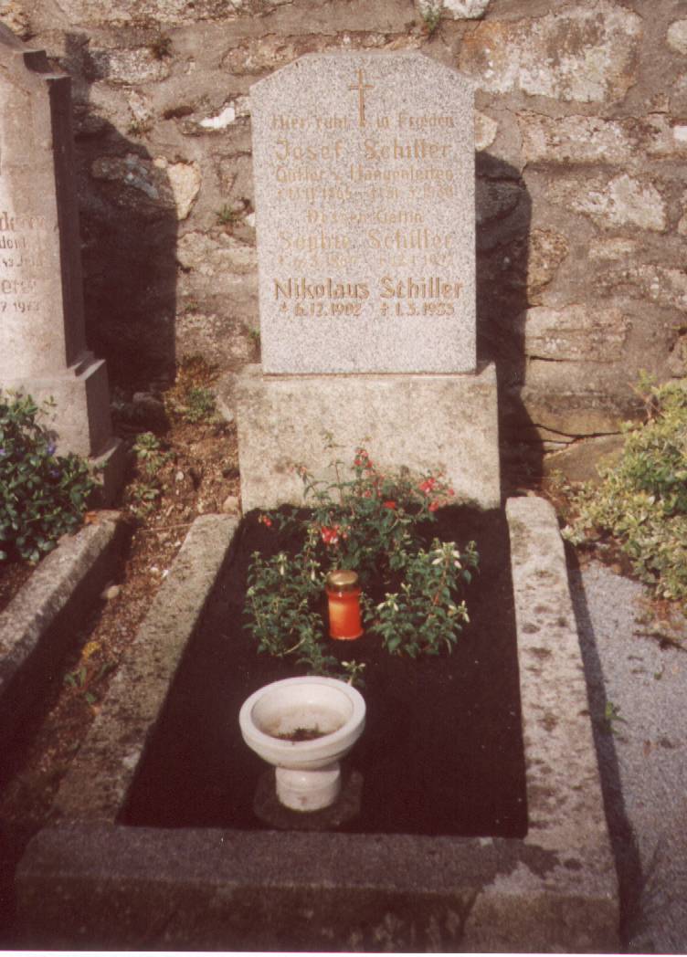 An der östlichen Friedhofsmauer ist das Grab meines Ururopas Josef Schiller, seiner Frau Sophie, geborene König und eines ihrer Kinder, Nikolaus, angelegt. Die Existenz und Belegung dieser letzten Ruhestätte ist mir erst im Zuge der Ahnenforschung bekannt geworden. |