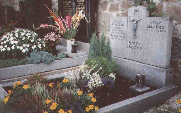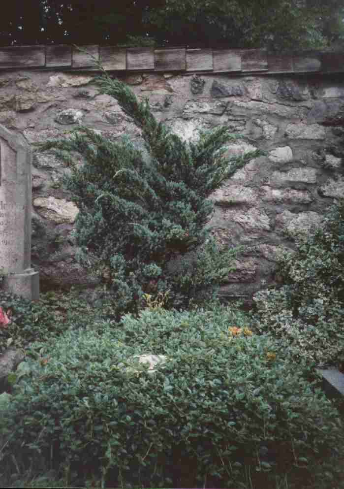 Das Foto links zeigt das Grab im April 2002, nachdem wir - meine Mutter und ich - die nicht unschweren Grabumfassungssteine wieder in Position gebracht hatten.
