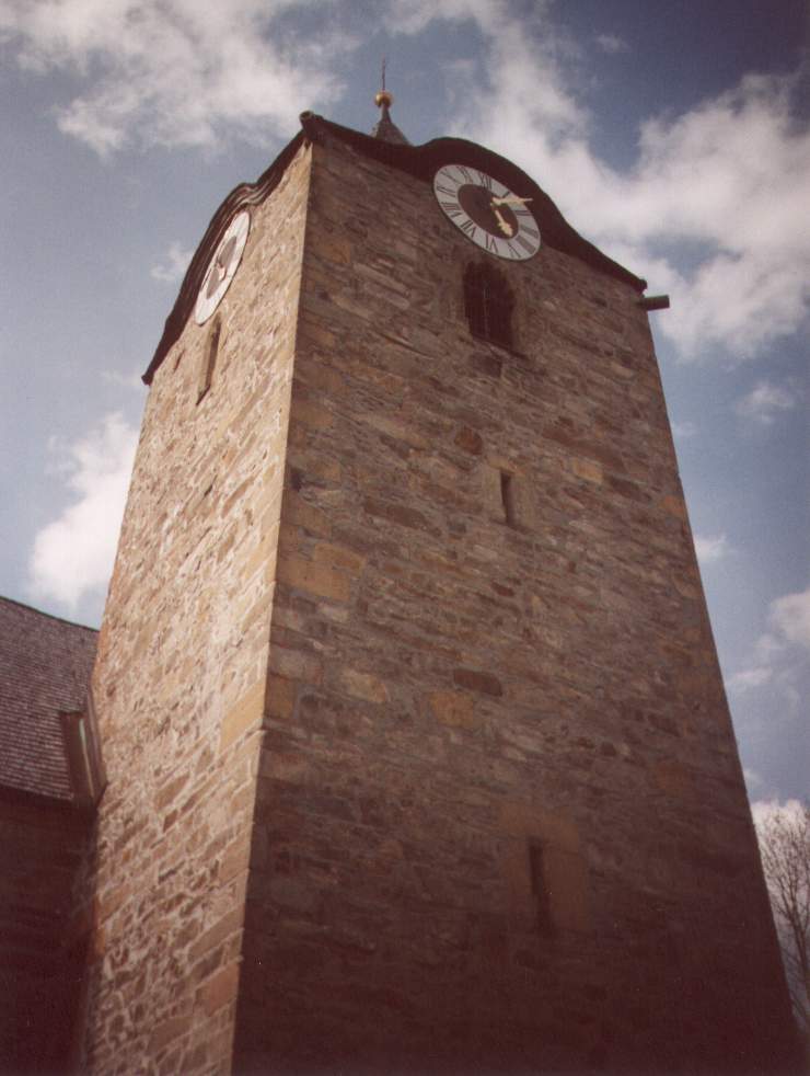 Beginnen wir den "virtuellen Rundgang" im Friedhof von Kirchberg im Wald. Kirchberg verfügt über zwei Friedhöfe, einen oben auf dem "Kirchenberge" und einen größeren weiter unten angelegten Gottesacker.